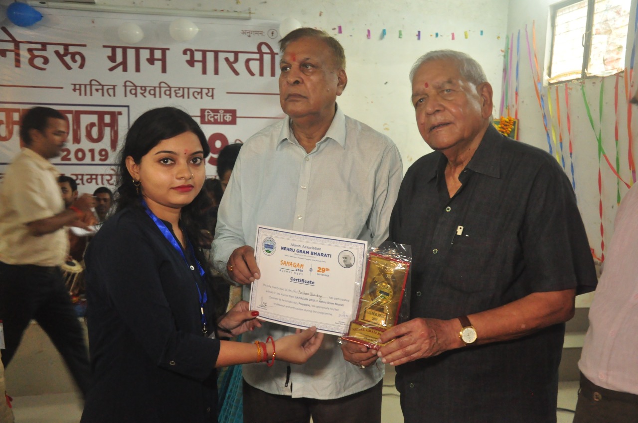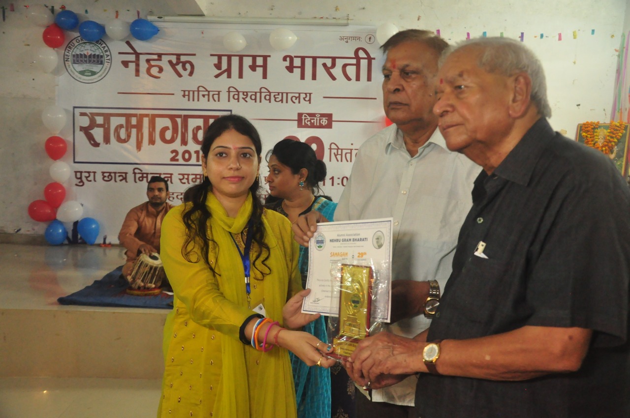 The objective of Nehru Gram Bharati Alumni Society is to constitute a supportive alumni committee which can play an important role in shaping the future of the deemed University. The bylaws have been framed and accordingly have been established for the better connect of alumni with the deemed University. A separate webpage for alumni is created for which there is good response from the alumni and around 500 registration have been done so far. A good number of alumni are occupying eminent position and are contributing to the deemed University. The fund is generated through the membership fees collected from the Alumnus and is used to conduct activities of the Alumni Society. The members of the Alumni Society contribute in the following manner:
